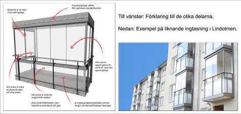 På bilden nedanvisas i princip den inglasning som kommer bli aktuell för vårt hus. Det blir tre paneler på våra balkonger. Balkongräcket blir i frostat glas.